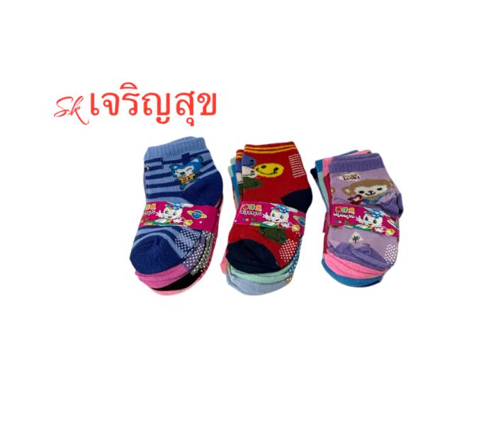 XIYANGTU ถุงเท้าเด็ก มียางกันลื่น SIZE-8-12 คละสี
