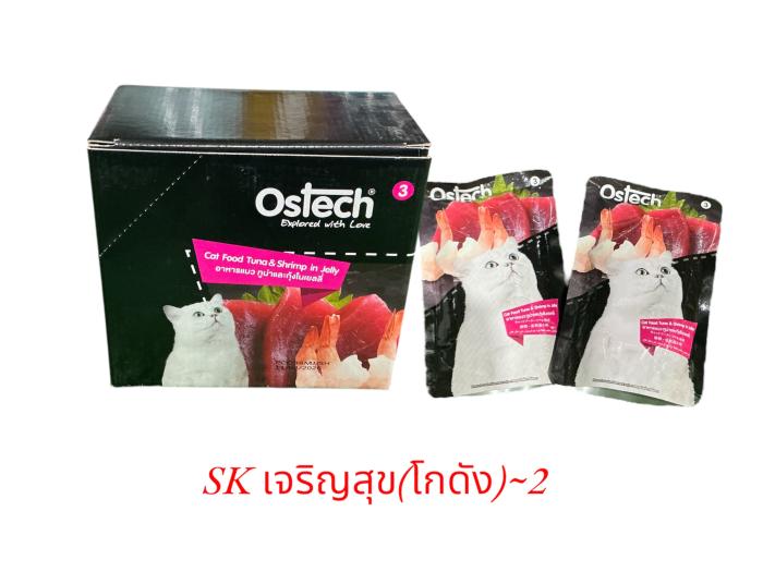 OStech อาหารแมว ทูน่าและกุ้งในเยลลี่ 80กรัม (12ซอง) เบอร์ 3